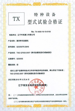 LDP电动单梁型式试验合格证
